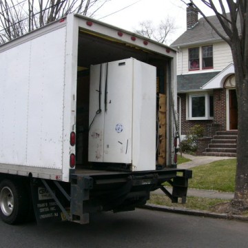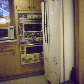 George is ready to go, his magnet collection safely parked on the oven awaiting the new fridge